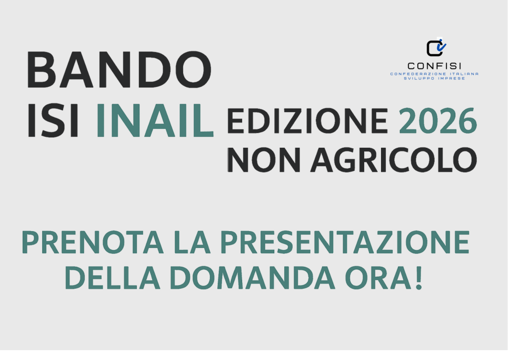 CONFISI informa i propri associati dell’apertura del nuovo Bando ISI INAIL, finalizzato a incentivare interventi volti al miglioramento dei livelli di salute e sicurezza nei luoghi di lavoro.