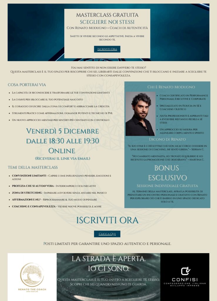 Vai su www.renatothecoach.com/brochure-masterclass per saperne di più e riservare il tuo posto